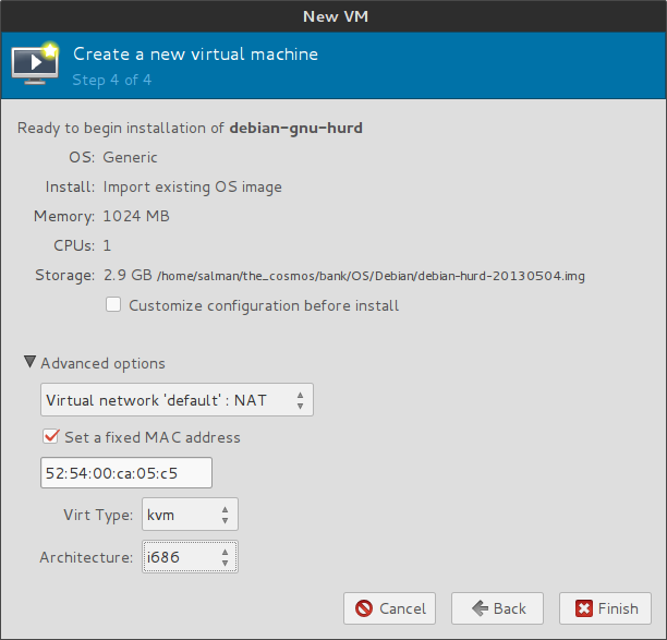 - قدم پنجم - ب: اجرا کردن دبیان گنو/هرد با استفاده از KVM